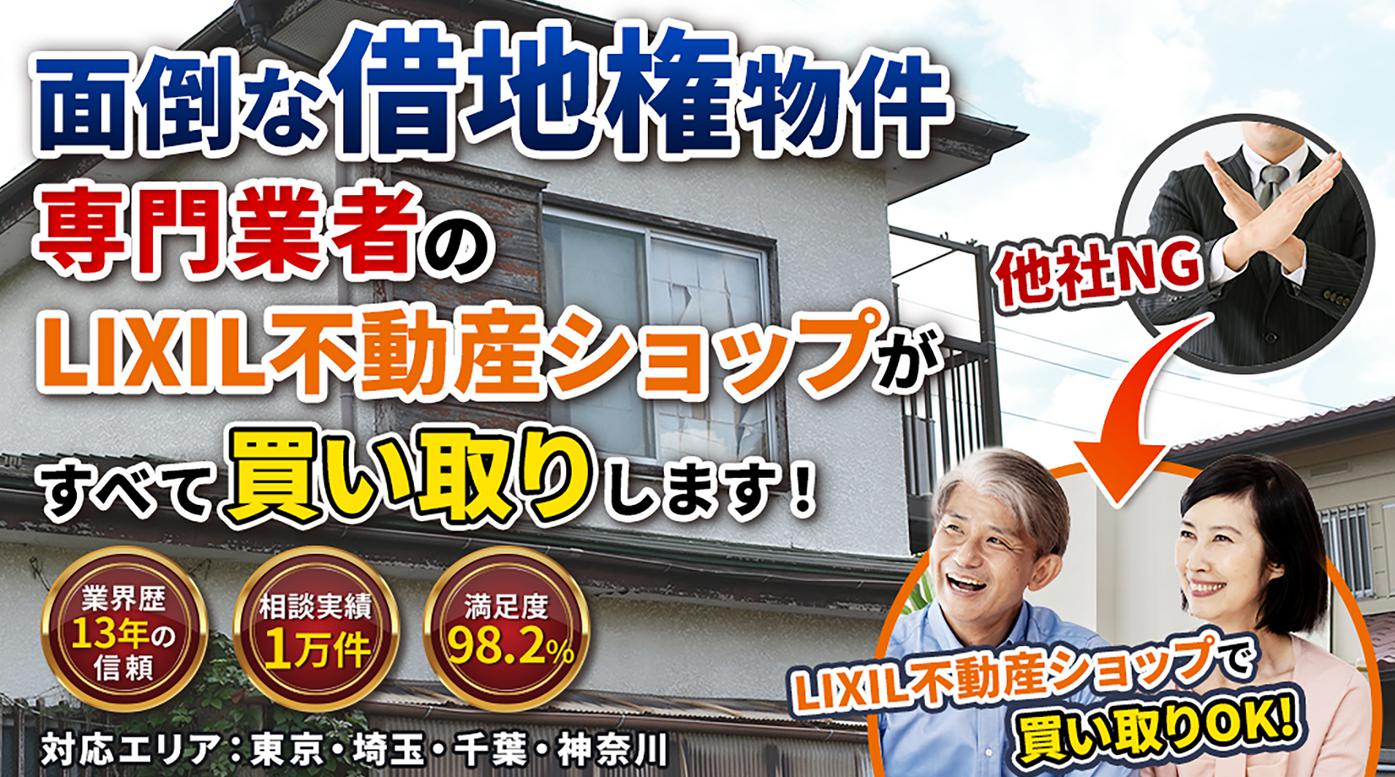 (株)ブリリアントが運営する「LIXIL不動産ショップ」では、借地権付き物件などの買取を行う「訳あり物件買取センター」を運営しています。