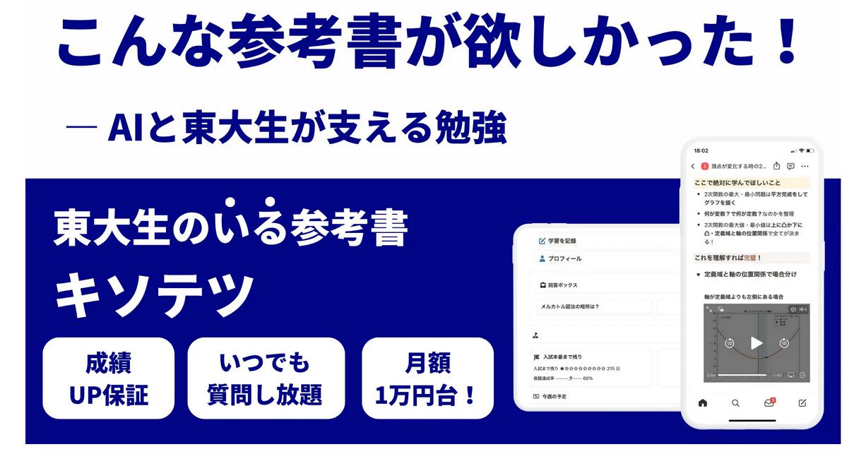 キソテツは、高校生・高卒生を対象としたオンライン参考書です。