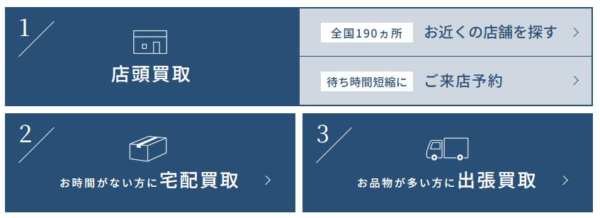 - 店頭買取(北海道から沖縄まで主要都市に展開)