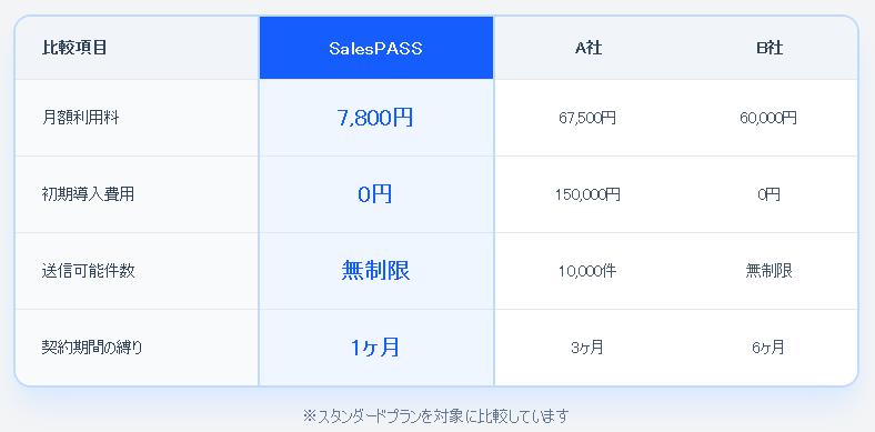 それと比べると、SalesPASSは「低単価・単純商材でもペイしやすい価格帯」にかなり寄せている印象です。