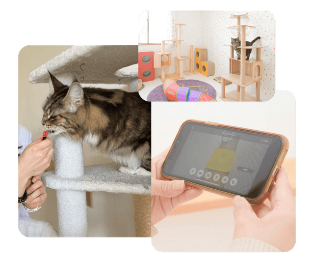 キャットタワー・キャットウォーク・爪とぎ・窓のある個室となっており、飼い猫が他の猫と同じ部屋で同居したり、ゲージに押し込められたりしないので、ストレスなく過ごせます。