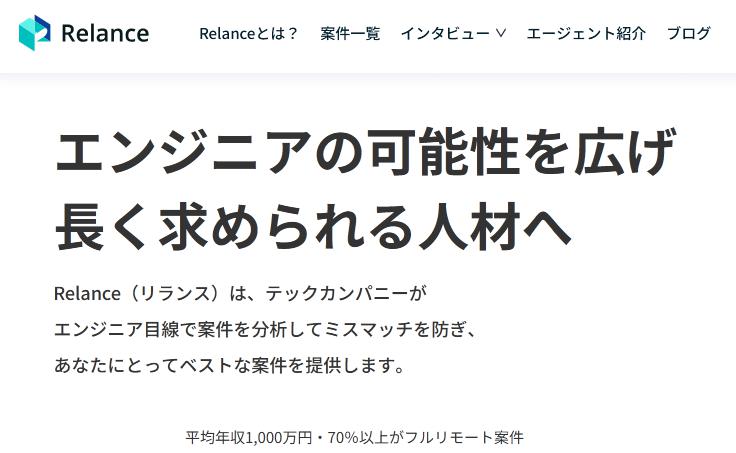 Relance(リランス)は、フリーランスのITエンジニアを対象に案件紹介を行っています。