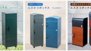 宅配ボックス名品館では据え置き型宅配ボックス「ルスネコボックス」シリーズを展開しています。宅配ボックス名品館は4種類の宅配ボックスから選べます。宅配ボックス名品館は10年間にわたって使い続けられる高品質であり、口コミでも評判となっています。