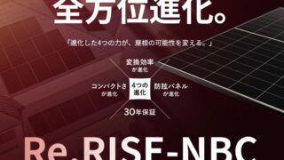 Re.RISE-NBCは変換効率・設置性・耐環境性・保証すべてが従来機種より進化した住宅用太陽光パネルです。Re.RISE-NBCの価格は個別見積もりとなっています。Re.RISE-NBCがおすすめできる住宅用太陽光パネルなのか調べました。