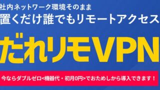 だれリモVPNは社内ネットワークなどの専門知識のない企業でもリモートアクセスを導入できるVPNです。だれリモVPNでは不正侵入を防ぐために2重のVPNで安全性を確保しています。だれリモVPNは月額料金のみで使用でき、面倒な縛りはありません。