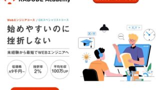 KADODE Academy(カドデアカデミー)はWEBエンジニアコース・DXスペシャリストコースの2種類を開講しています。KADODE Academy(カドデアカデミー)は全くのIT未経験者でも実務レベルまで上達できます。口コミや評判は?