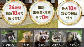 駆除 害獣セーフガードは最長10年の再発防止保証つきで口コミでも評判! 害獣セーフガードは、関東・東海・近畿・北陸を対象に、害獣・害鳥の駆除・再発防止を行っています。害獣セーフガードは最長10年間の再発防止保証がついており、再発した際には無料で再駆除・再施工が受けられます。害獣セーフガードの口コミや評判はどう? 2026.02.21 駆除