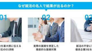 就活の名人エージェントは就活生を対象とした就職支援サービスです。就活の名人エージェントは優良企業5社を厳選紹介したり、特別選考ルートを活用することで、最短1週間で内定獲得できます。就活の名人エージェントは就活生満足度が98%という高さです。